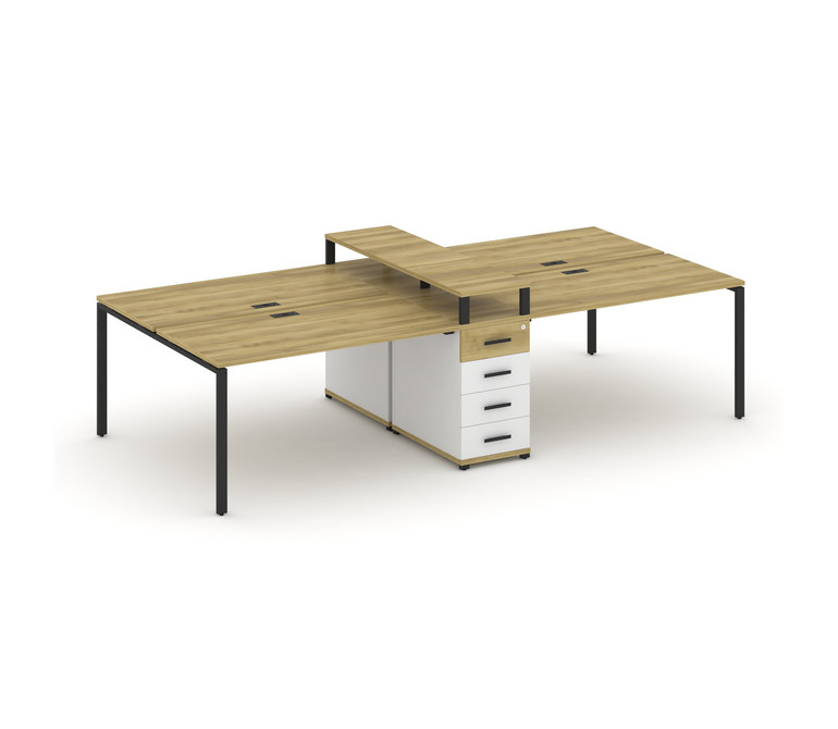 Concept Рабочая станция 4 места с 1 опорной тумбой CN.DRS-435 B Дуб Винченцо/Белый Бриллиант/Металл