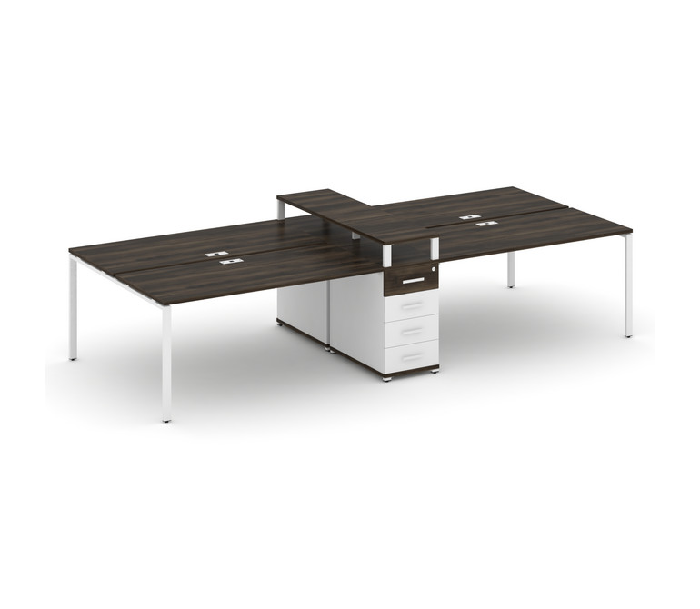 Concept Рабочая станция 4 места с 1 опорной тумбой CN.DRS-436 W Дуб Мали/Белый Бриллиант/Металл Белы