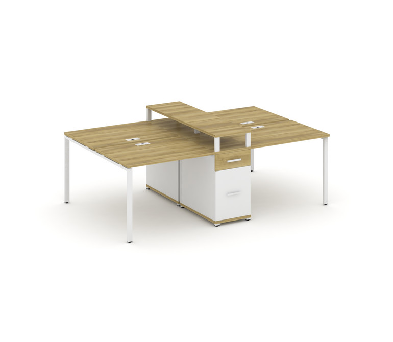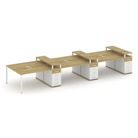 Concept Рабочая станция 4 места с 1 опорной тумбой CN.DRS-437 W Дуб Винченцо/Белый Бриллиант/Металл
