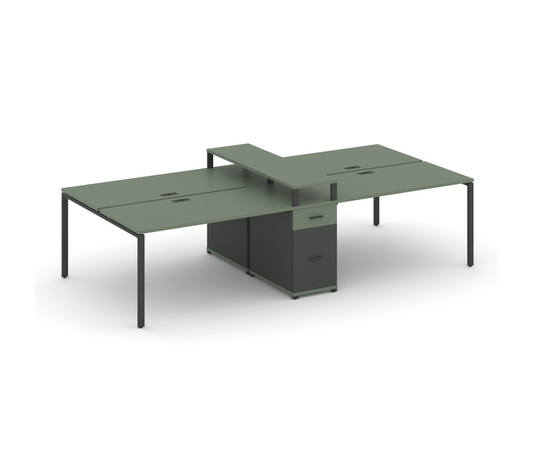 Concept Рабочая станция 4 места с 1 опорной тумбой CN.DRS-439 A Кобо/Антрацит/Металл Антрацит 3180*1