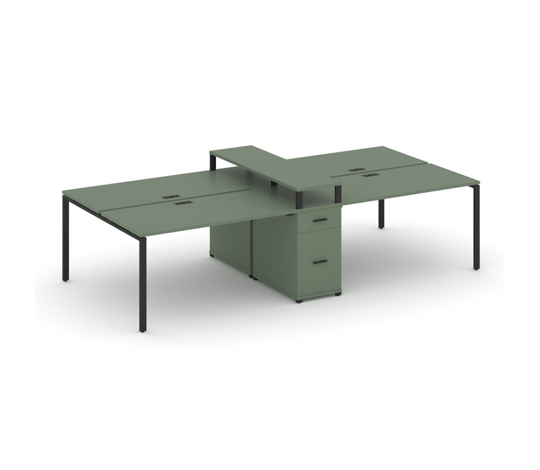 Concept Рабочая станция 4 места с 1 опорной тумбой CN.DRS-440 B Кобо/Металл Черный 3580*1480*917