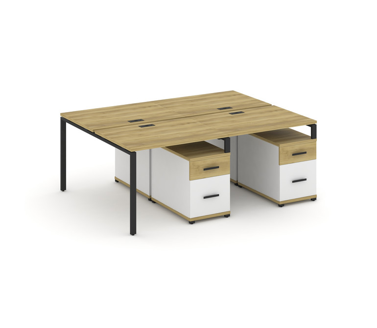 Concept Рабочая станция 4 места с 2 двухсторонними опорными тумбами CN.DRS-321 B Дуб Винченцо/Белый