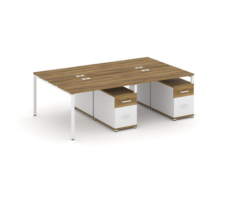 Concept Рабочая станция 4 места с 2 двухсторонними опорными тумбами CN.DRS-322 W Сандал Янтарный/Бел