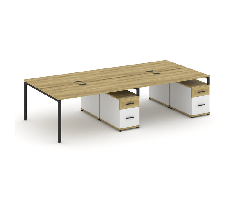 Concept Рабочая станция 4 места с 2 двухсторонними опорными тумбами CN.DRS-324 B Дуб Винченцо/Белый