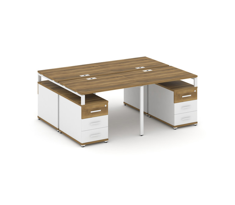 Concept Рабочая станция 4 места с 2 двухсторонними опорными тумбами CN.DRS-325 W Сандал Янтарный/Бел