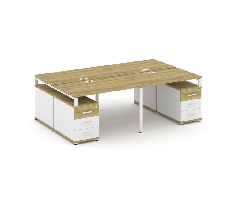 Concept Рабочая станция 4 места с 2 двухсторонними опорными тумбами CN.DRS-326 W Дуб Винченцо/Белый