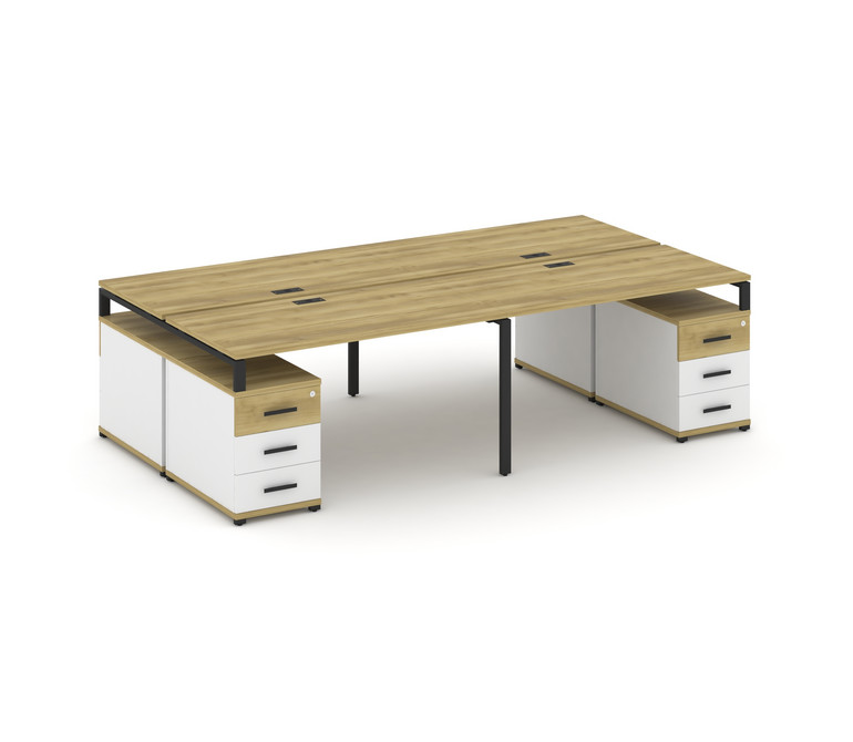 Concept Рабочая станция 4 места с 2 двухсторонними опорными тумбами CN.DRS-327 B Дуб Винченцо/Белый
