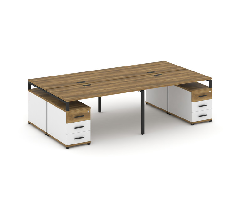Concept Рабочая станция 4 места с 2 двухсторонними опорными тумбами CN.DRS-327 B Сандал Янтарный/Бел