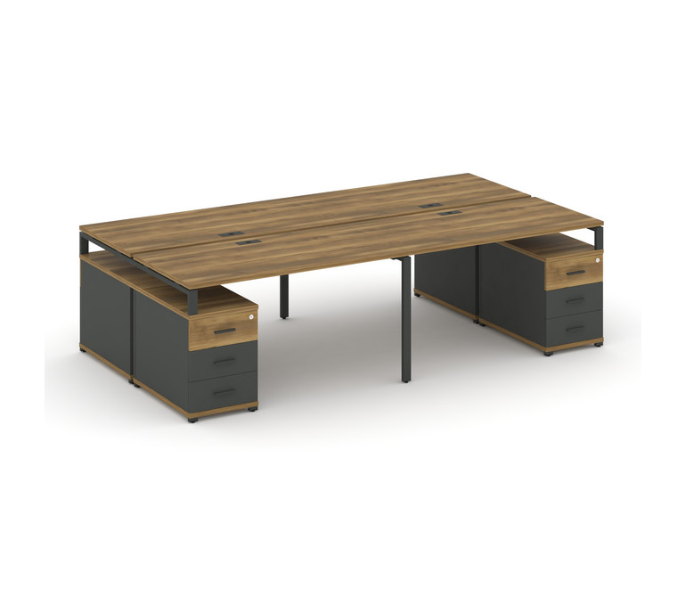 Concept Рабочая станция 4 места с 2 двухсторонними опорными тумбами CN.DRS-328 A Сандал Янтарный/Ант