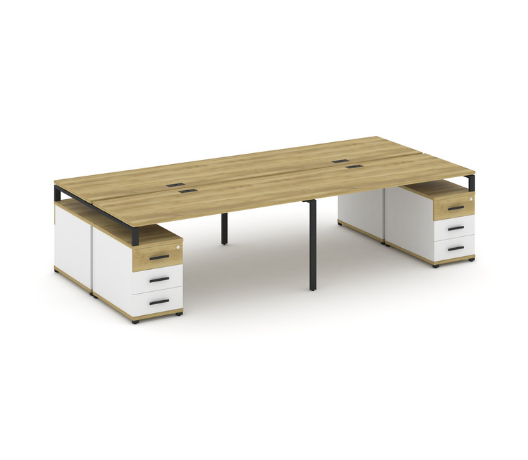 Concept Рабочая станция 4 места с 2 двухсторонними опорными тумбами CN.DRS-328 B Дуб Винченцо/Белый
