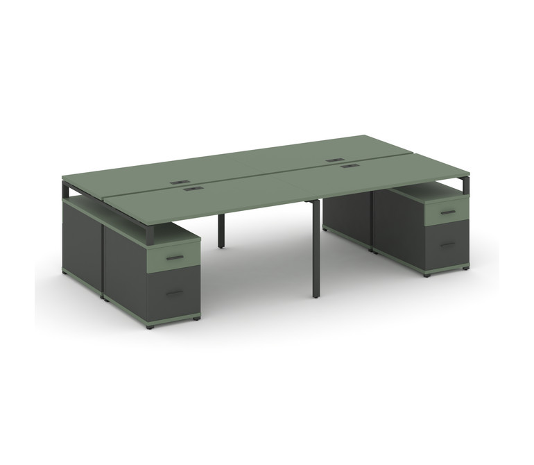 Concept Рабочая станция 4 места с 2 двухсторонними опорными тумбами CN.DRS-329 A Кобо/Антрацит/Метал