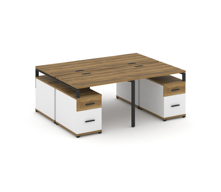 Concept Рабочая станция 4 места с 2 двухсторонними опорными тумбами CN.DRS-329 B Сандал Янтарный/Бел