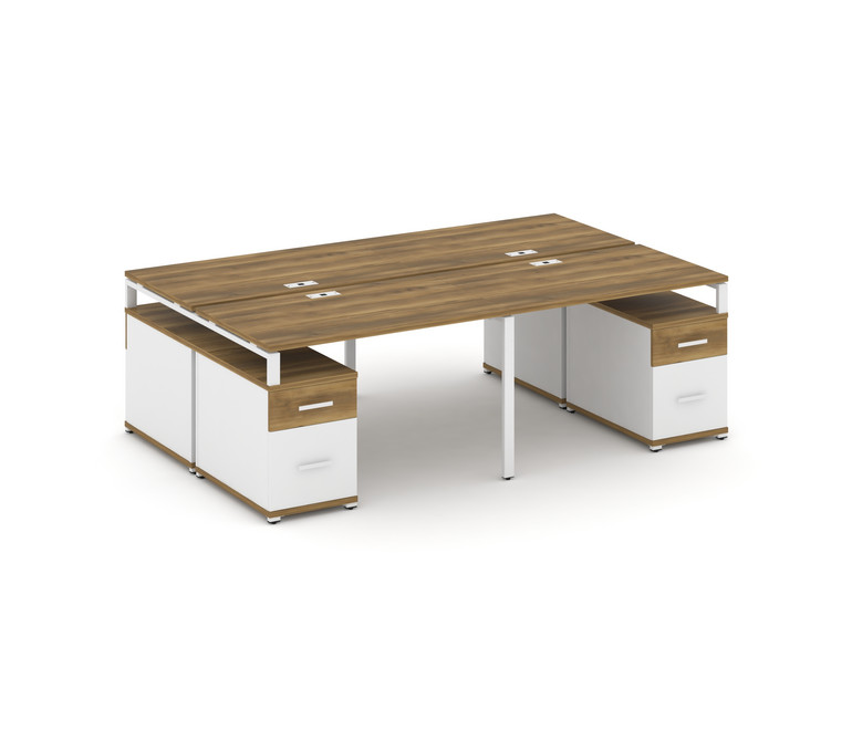 Concept Рабочая станция 4 места с 2 двухсторонними опорными тумбами CN.DRS-330 W Сандал Янтарный/Бел