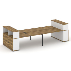 Concept Рабочая станция 4 места с 2 двухсторонними опорными тумбами CN.DRS-331 B Дуб Мали/Белый Брил