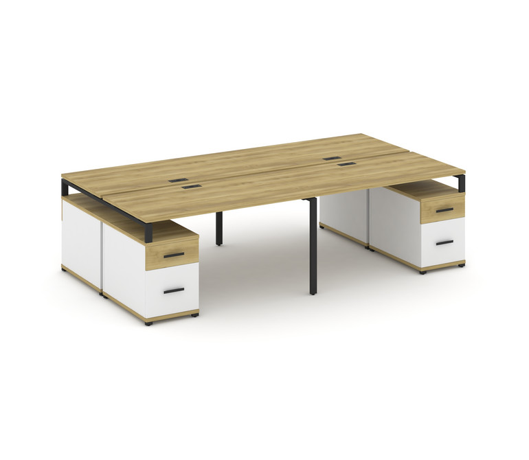 Concept Рабочая станция 4 места с 2 двухсторонними опорными тумбами CN.DRS-331 B Дуб Винченцо/Белый