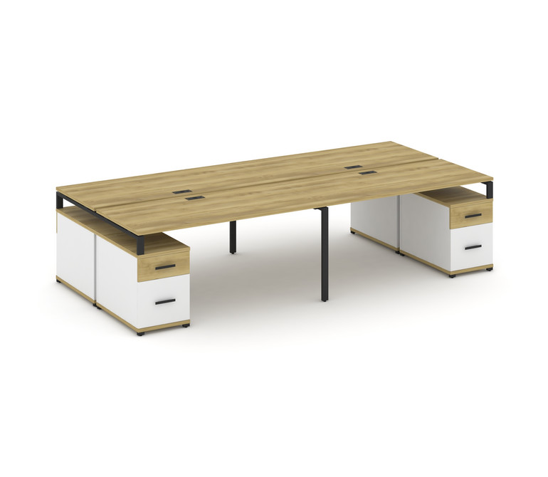 Concept Рабочая станция 4 места с 2 двухсторонними опорными тумбами CN.DRS-332 B Дуб Винченцо/Белый