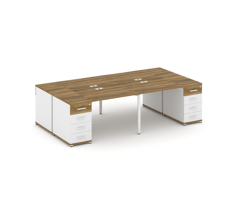 Concept Рабочая станция 4 места с 2 опорными тумбами CN.DRS-425 W Сандал Янтарный/Белый Бриллиант/Ме