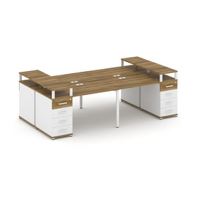 Concept Рабочая станция 4 места с 2 опорными тумбами CN.DRS-427 W Дуб Винченцо/Белый Бриллиант/Метал