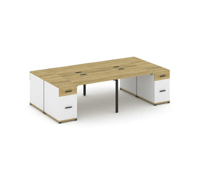Concept Рабочая станция 4 места с 2 опорными тумбами CN.DRS-429 B Дуб Винченцо/Белый Бриллиант/Метал