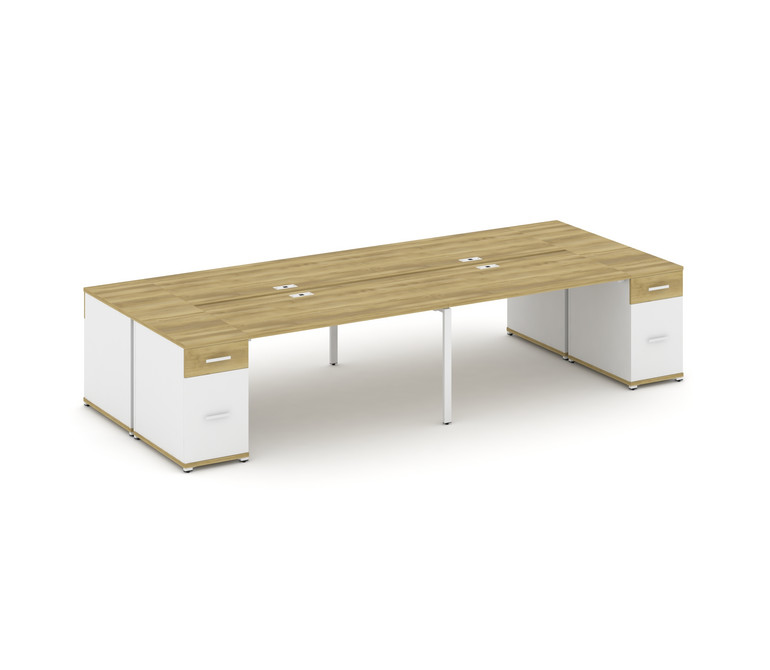 Concept Рабочая станция 4 места с 2 опорными тумбами CN.DRS-431 W Дуб Винченцо/Белый Бриллиант/Метал