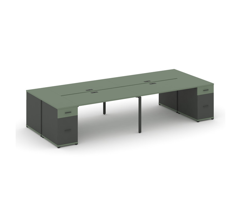 Concept Рабочая станция 4 места с 2 опорными тумбами CN.DRS-432 A Кобо/Антрацит/Металл Антрацит 4000
