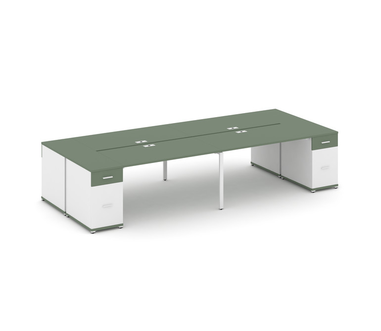 Concept Рабочая станция 4 места с 2 опорными тумбами CN.DRS-432 W Кобо/Белый Бриллиант/Металл Белый