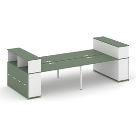 Concept Рабочая станция 4 места с 2 опорными тумбами CN.DRS-441 A Дуб Винченцо/Антрацит/Металл Антра