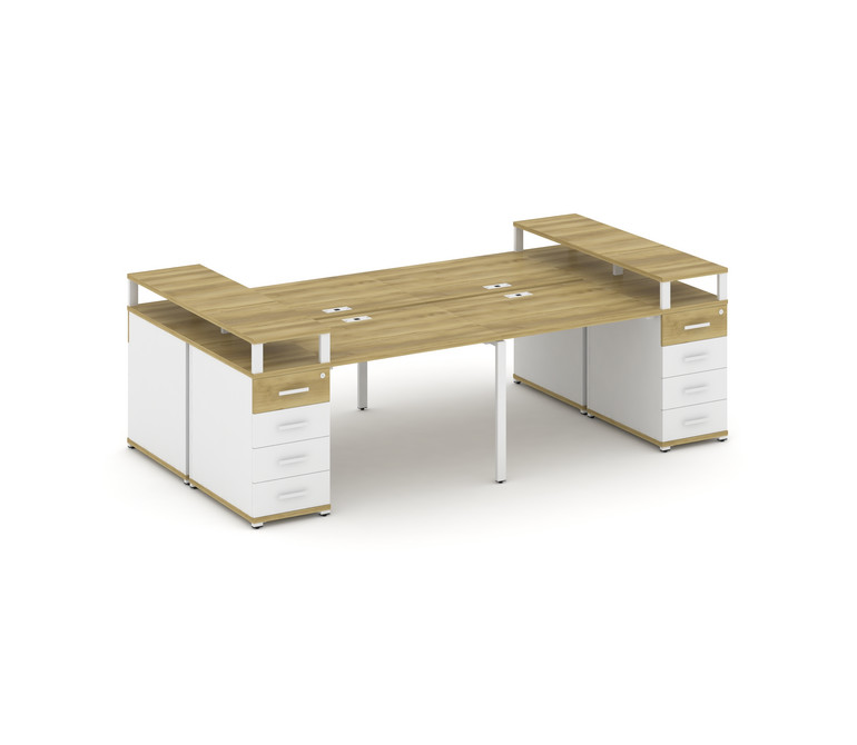 Concept Рабочая станция 4 места с 2 опорными тумбами CN.DRS-441 W Дуб Винченцо/Белый Бриллиант/Метал