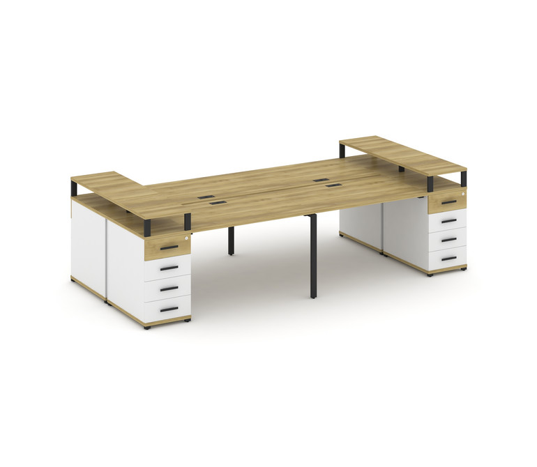 Concept Рабочая станция 4 места с 2 опорными тумбами CN.DRS-442 B Дуб Винченцо/Белый Бриллиант/Метал