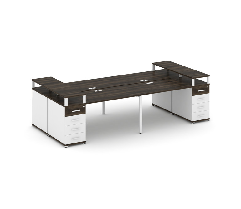 Concept Рабочая станция 4 места с 2 опорными тумбами CN.DRS-442 W Дуб Мали/Белый Бриллиант/Металл Бе