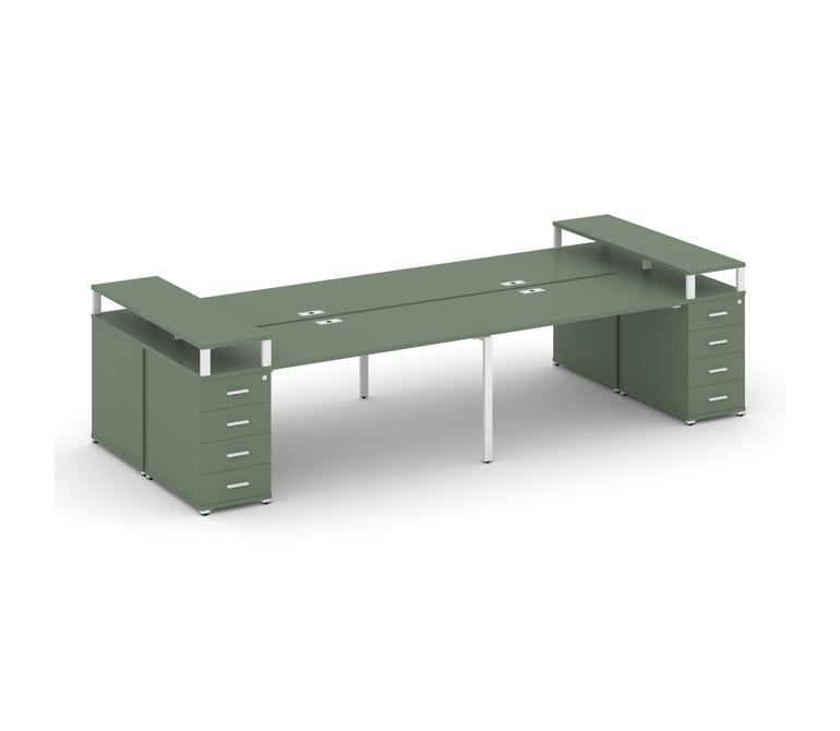 Concept Рабочая станция 4 места с 2 опорными тумбами CN.DRS-443 W Кобо/Металл Белый 3600*1480*917