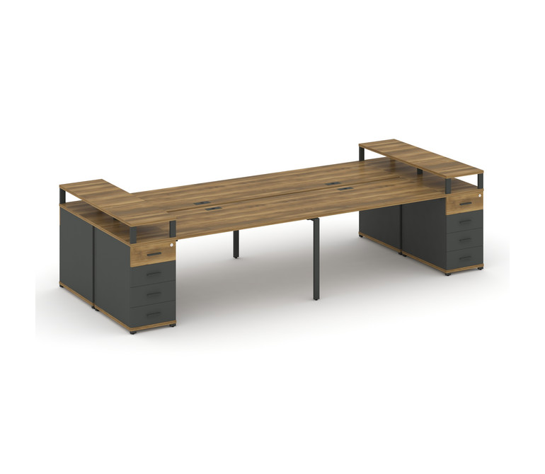 Concept Рабочая станция 4 места с 2 опорными тумбами CN.DRS-444 A Сандал Янтарный/Антрацит/Металл Ан