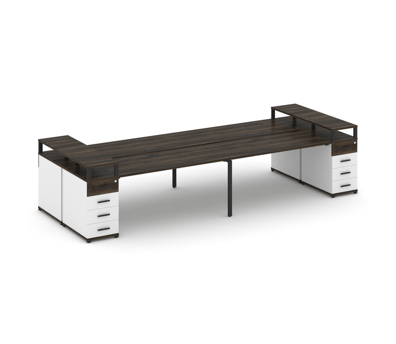 Concept Рабочая станция 4 места с 2 опорными тумбами CN.DRS-444 B Дуб Мали/Белый Бриллиант/Металл Че