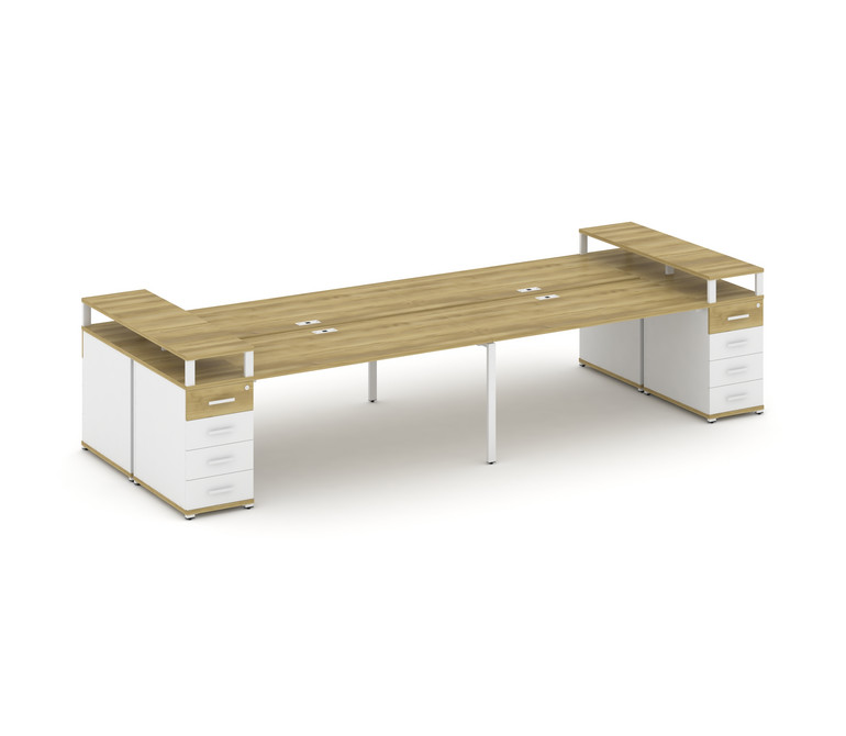 Concept Рабочая станция 4 места с 2 опорными тумбами CN.DRS-444 W Дуб Винченцо/Белый Бриллиант/Метал
