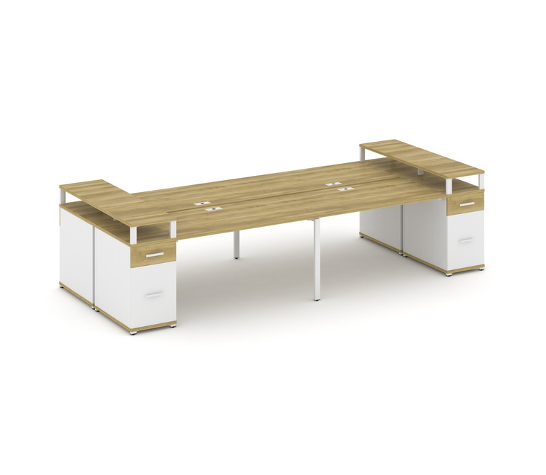 Concept Рабочая станция 4 места с 2 опорными тумбами CN.DRS-447 W Дуб Винченцо/Белый Бриллиант/Метал
