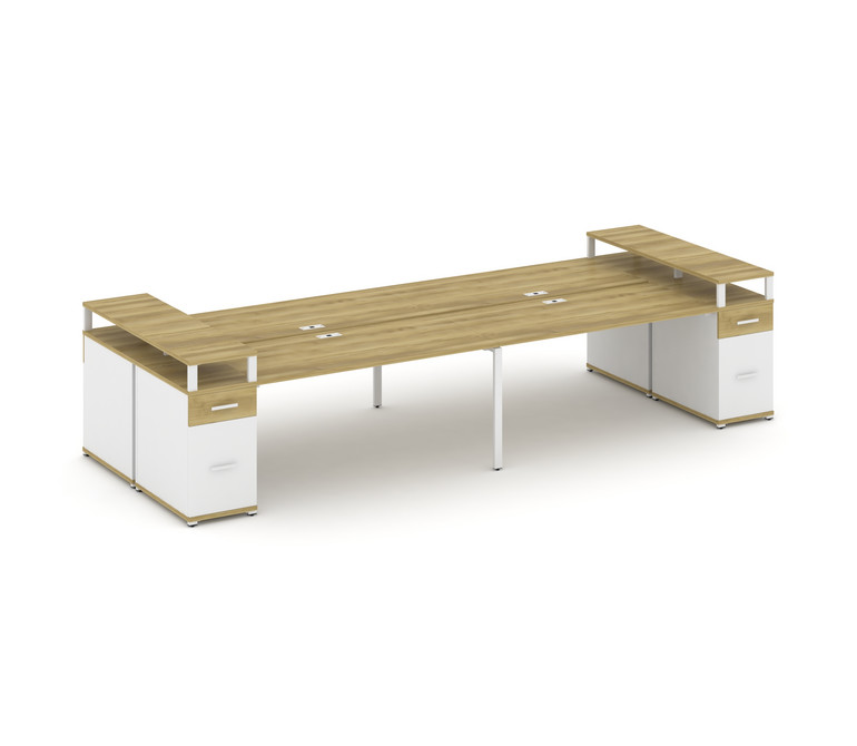 Concept Рабочая станция 4 места с 2 опорными тумбами CN.DRS-448 W Дуб Винченцо/Белый Бриллиант/Метал