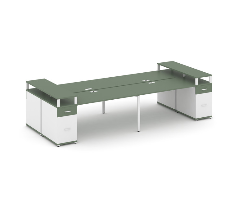 Concept Рабочая станция 4 места с 2 опорными тумбами CN.DRS-448 W Кобо/Белый Бриллиант/Металл Белый