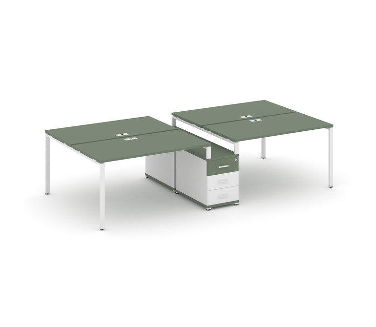 Concept Рабочая станция 4 места с двухсторонней опорной тумбой CN.DRS-311 W Кобо/Белый Бриллиант/Мет