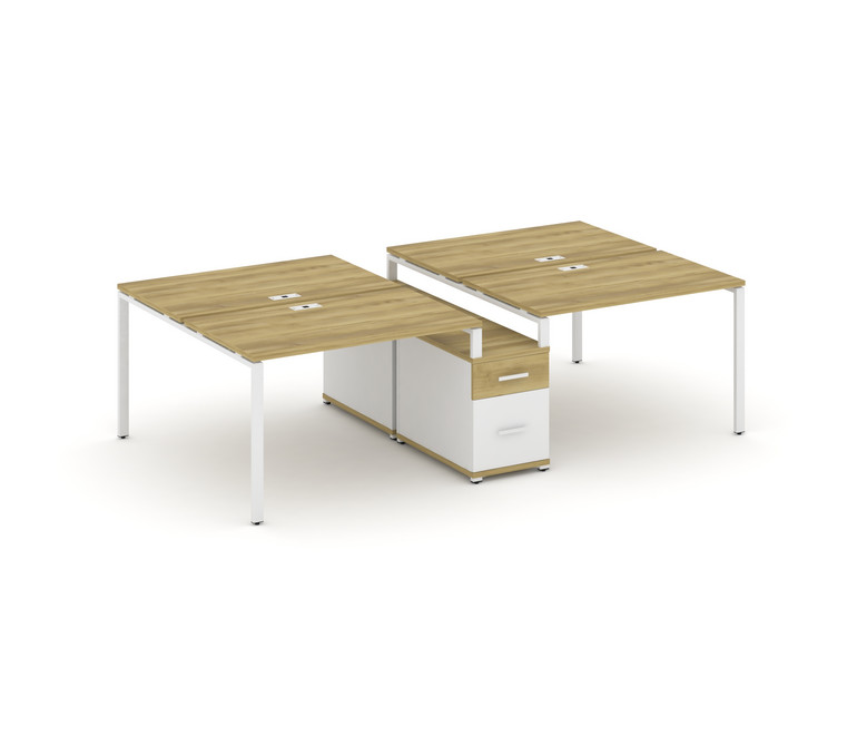 Concept Рабочая станция 4 места с двухсторонней опорной тумбой CN.DRS-314 W Дуб Винченцо/Белый Брилл