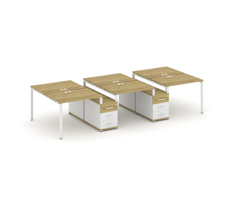 Concept Рабочая станция 6 мест с 2 двухсторонними опорными тумбами CN.DRS-333 W Дуб Винченцо/Белый Б