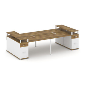 Concept Рабочая станция 6 мест с 2 двухсторонними опорными тумбами CN.DRS-336 W Сандал Янтарный/Белы