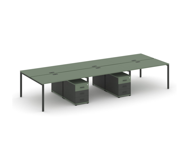 Concept Рабочая станция 6 мест с 2 двухсторонними опорными тумбами CN.DRS-341 A Кобо/Антрацит/Металл
