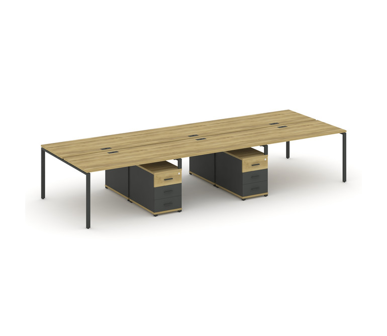 Concept Рабочая станция 6 мест с 2 двухсторонними опорными тумбами CN.DRS-343 A Дуб Винченцо/Антраци
