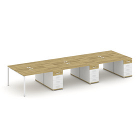 Concept Рабочая станция 6 мест с 3 двухсторонними опорными тумбами CN.DRS-353 B Дуб Винченцо/Белый Б