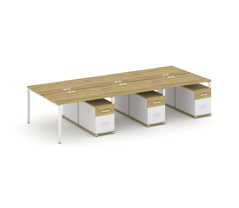 Concept Рабочая станция 6 мест с 3 двухсторонними опорными тумбами CN.DRS-354 W Дуб Винченцо/Белый Б