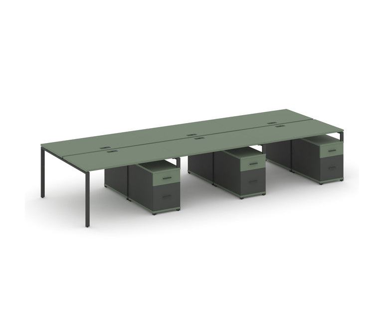 Concept Рабочая станция 6 мест с 3 двухсторонними опорными тумбами CN.DRS-355 A Кобо/Антрацит/Металл
