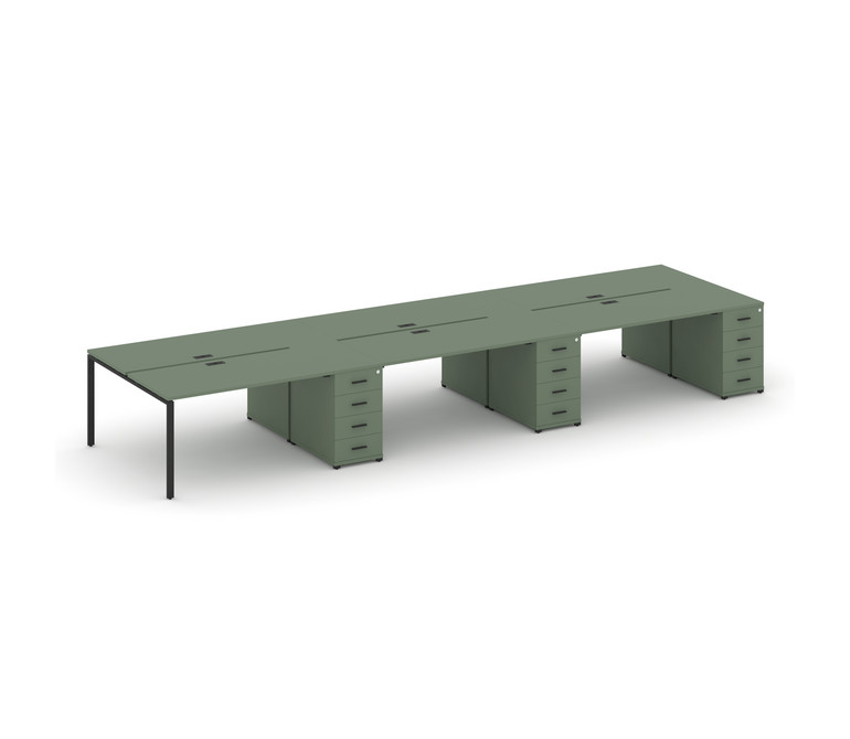 Concept Рабочая станция 6 мест с 3 опорными тумбами CN.DRS-457 B Кобо/Металл Черный 4200*1480*750