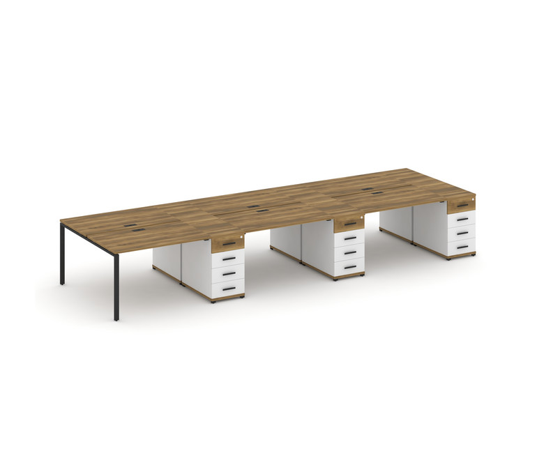 Concept Рабочая станция 6 мест с 3 опорными тумбами CN.DRS-458 B Сандал Янтарный/Белый Бриллиант/Мет