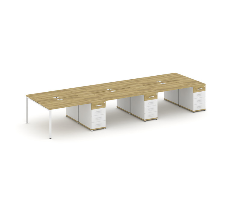 Concept Рабочая станция 6 мест с 3 опорными тумбами CN.DRS-458 W Дуб Винченцо/Белый Бриллиант/Металл