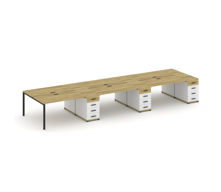 Concept Рабочая станция 6 мест с 3 опорными тумбами CN.DRS-459 B Дуб Винченцо/Белый Бриллиант/Металл